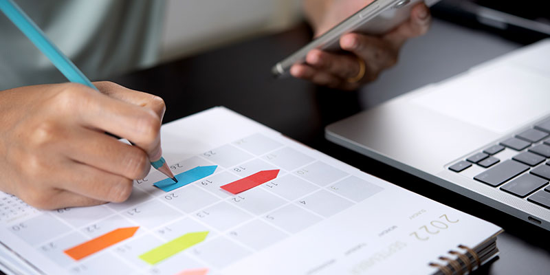 Having a clear plan increases your chance of success and helps prevent stress. You won’t miss deadlines, and you won’t let yourself get swamped with work if your schedule is always in front of you!